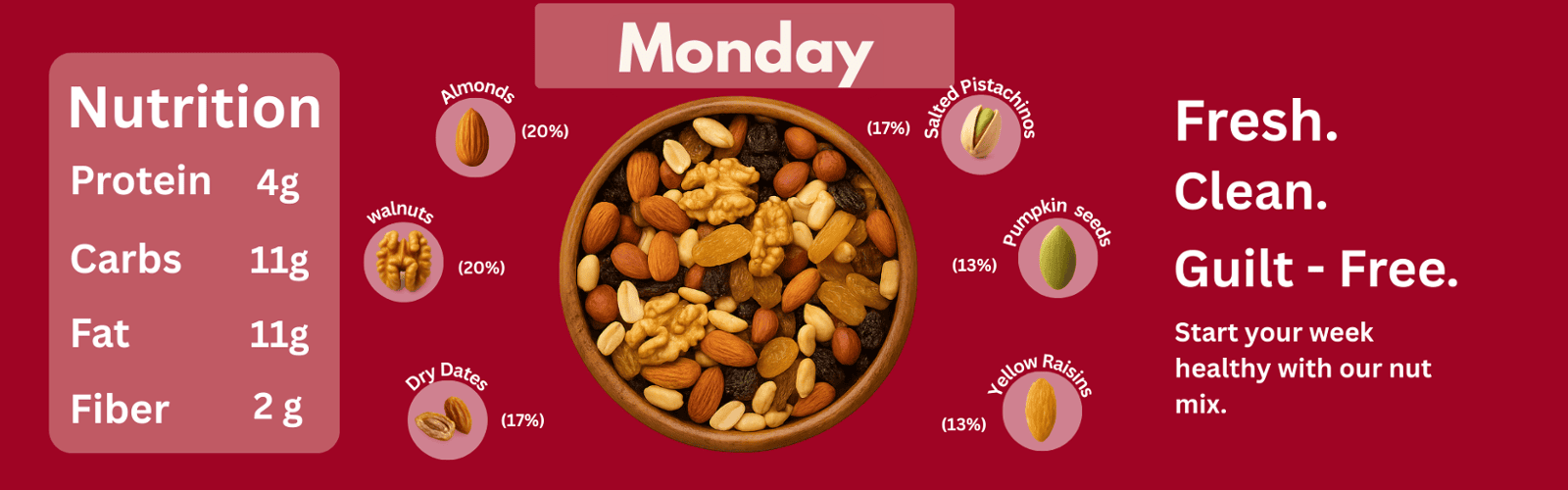 Fuel your midweek with protein-rich nuts and naturally sweet fruits. Stay full, focused and energized.