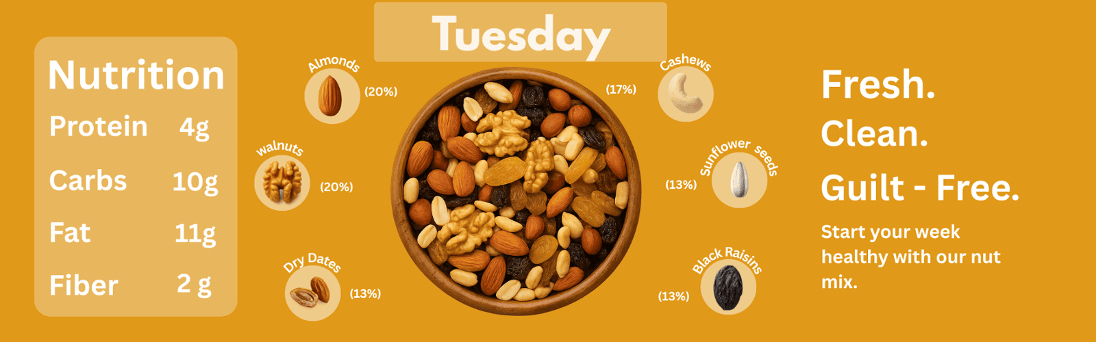 Fuel your midweek with protein-rich nuts and naturally sweet fruits. Stay full, focused and energized.